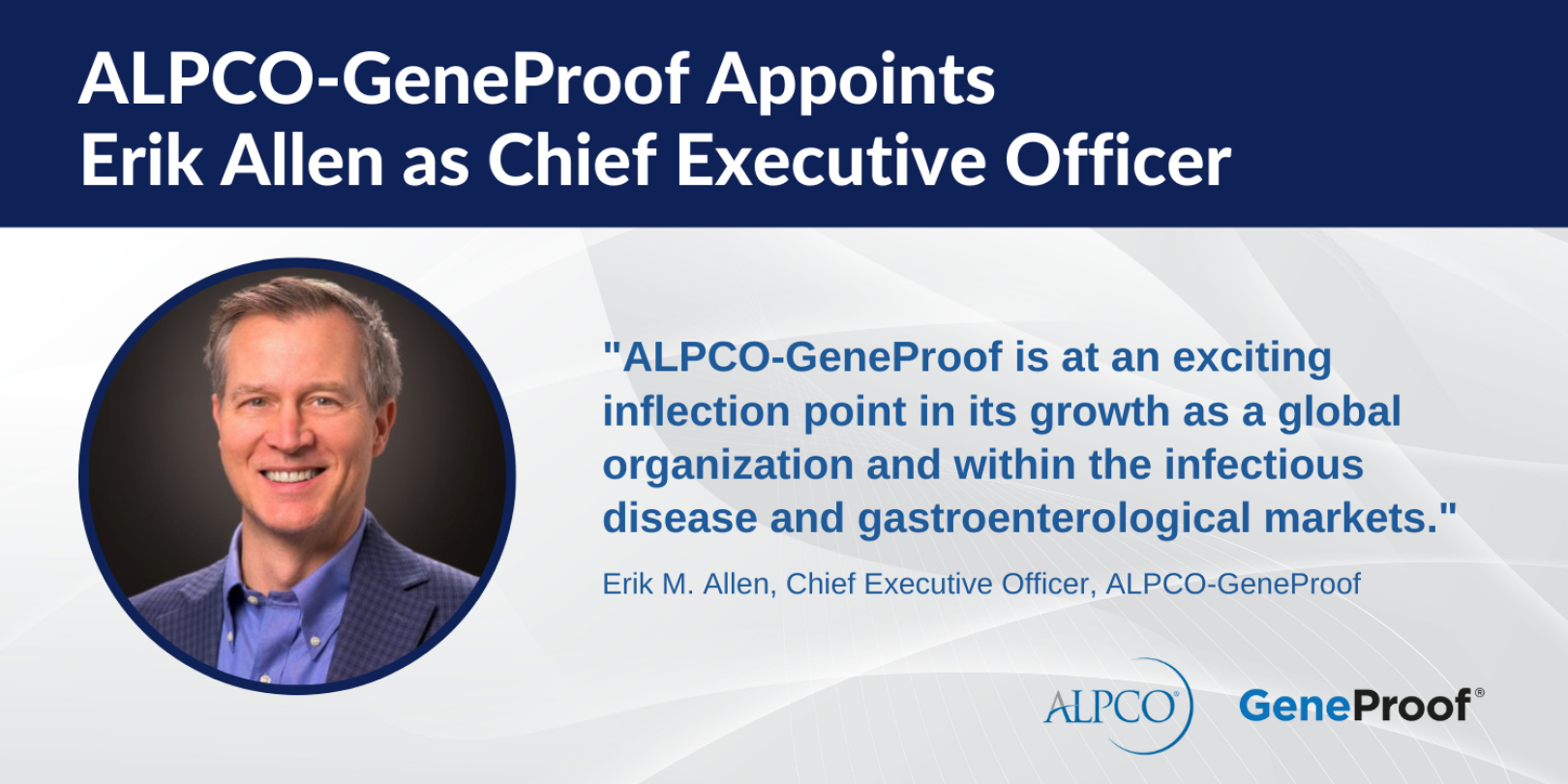 Na pozici nového generálního ředitele společnosti ALPCO Holdings, pod kterou spadají americká společnost ALPCO ( American Laboratory Products Company, Ltd.) a česká společnost GeneProof a.s., byl 27. března 2023 jmenován pan Erik M. Allen.