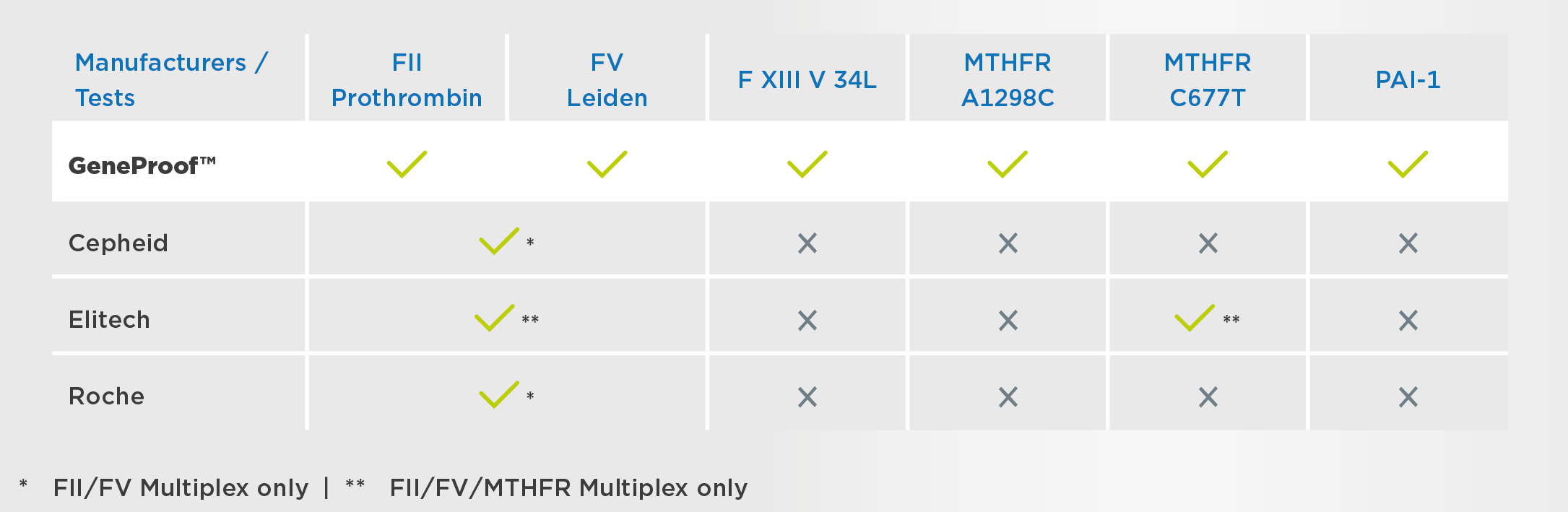 The GeneProof myCROBE® Solution provides the most comprehensive range of PCR kits designed for the automated detection of Thrombotic Mutations.